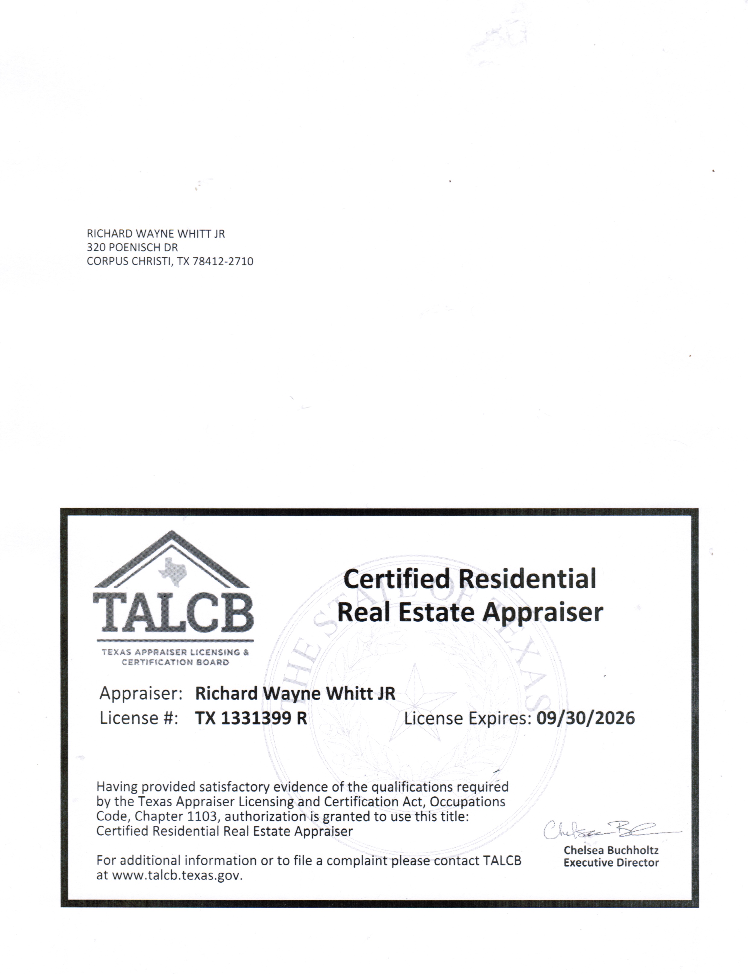 Certified Appraisal Svc., PLLC 320 Poenisch Drive Corpus Christi, TX - Texas 784122710